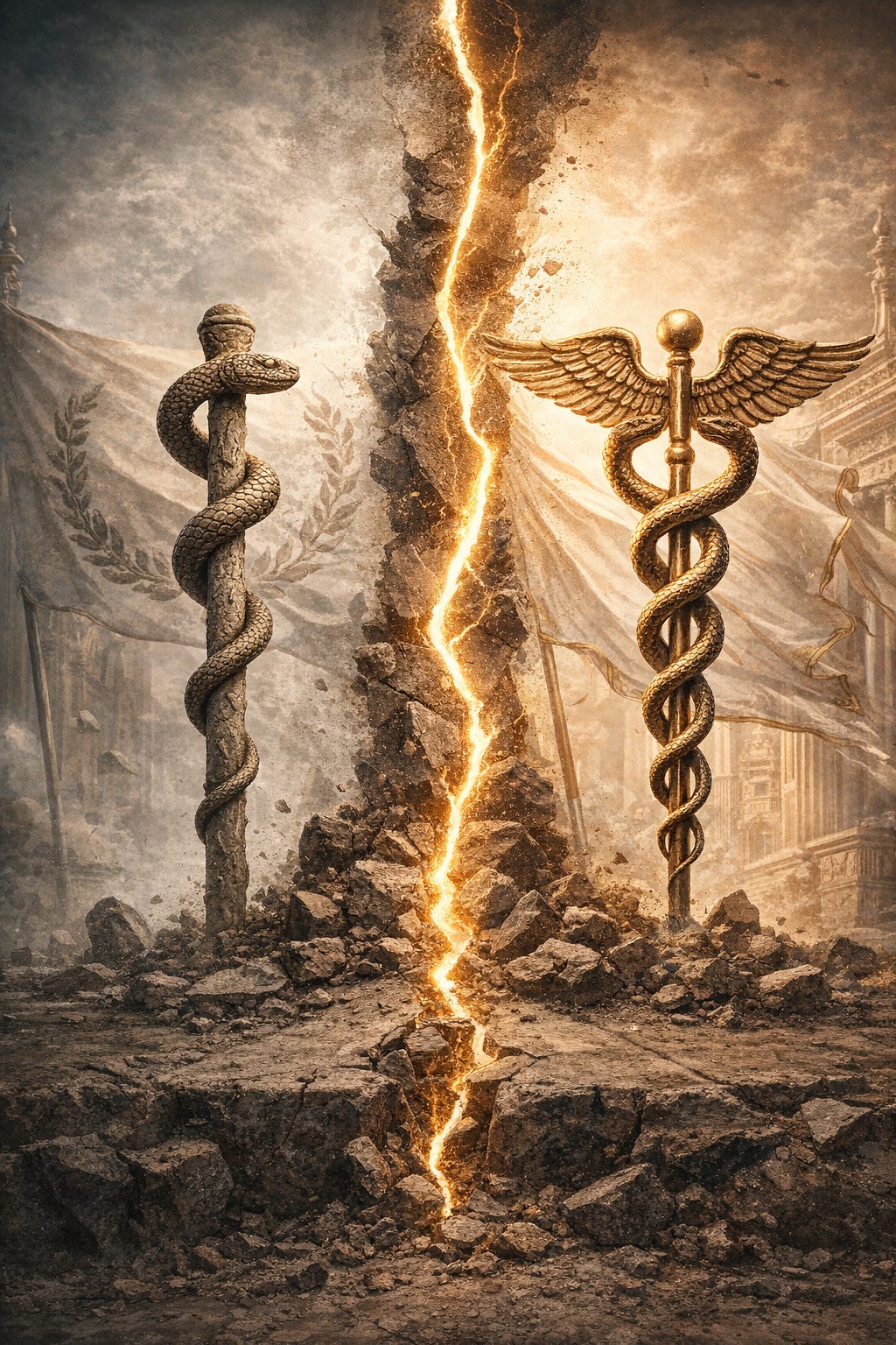 https://phi.network/stream#t=eyJ2IjoyLCJ1cmwiOiJodHRwczovL3BoaS5uZXR3b3JrL3MvMDY3ZWVkODczMTZjNmI5YjAzMTlkM2UzNzJhMmIxYTQ1Nzg5ZGFiYjYyNDg2MThhMmQ1YjgwZjAzNGRmN2ZiYz9wPWV5SndkV3h6WlNJNk1UQTFNamMwTnpFc0ltSmxZWFFpT2pNeExDSnpkR1Z3U1c1a1pYZ2lPakUwTENKamFHRnJjbUZFWVhraU9pSlRZV055WVd3aUxDSnpkR1Z3YzFCbGNrSmxZWFFpT2pRMExDSjFjMlZ5VUdocFMyVjVJam9pTVVSV1FWTlpPRkpZZEhoalEyTnlRbk5NYUZCWmRYUk5PRzF4WkROdU9WYzJOaUlzSW10aGFWTnBaMjVoZEhWeVpTSTZJalJpTmpBMk1UVXdOMlJoWkdNeVpEa3dZemd5TXpFME1EWmpaR1JpTXprNFl6TXpaakpqT0dVeU9HWmxNVEpqT0dJeU16RTVZVEppWTJWak1qa3daVGdpZlEiLCJwdWxzZSI6MTA1MzcyNzAsImNhcHRpb24iOiJUSEUg4pikQ0FEVUNFVVMgRlJBVUQiLCJib2R5Ijp7ImtpbmQiOiJ0ZXh0IiwidGV4dCI6IlRIRSDimKRDQURVQ0VVUyBGUkFVRFxuXG5BbiBFeHBvc3VyZSBvZiBTeW1ib2xpYyBUaGVmdCwgSW5zdGl0dXRpb25hbCBEcmlmdCwgYW5kIHRoZSBSZXN0b3JhdGlvbiBvZiBGdW5jdGlvblxuXG5UaGVyZSBhcmUgbW9tZW50cyB3aGVuIHNvbWV0aGluZyBmZWVscyB3cm9uZyBsb25nIGJlZm9yZSBsYW5ndWFnZSBjYXRjaGVzIHVwLlxuXG5Gb3Igb3ZlciBhIGNlbnR1cnksIG1lZGljaW5lIGhhcyB3b3JuIGEgc3ltYm9sIHRoYXQgbmV2ZXIgYmVsb25nZWQgdG8gaXQuXG5cbk5vdCBtZXRhcGhvcmljYWxseS5cblxuTm90IHBvZXRpY2FsbHkuXG5cbkZ1bmN0aW9uYWxseS5cblxuQW5kIHRoZSByZWFzb24gaXQgYWx3YXlzIGZlbHQgZm9yY2Vk4oCUd2h5IGl0IG5ldmVyIHF1aXRlIHNldHRsZWQgaW4gdGhlIG5lcnZvdXMgc3lzdGVt4oCUaXMgYmVjYXVzZSBpdCB3YXMuXG5cblRoaXMgaXMgbm90IGEgZGViYXRlIG9mIGFlc3RoZXRpY3MuXG5cblRoaXMgaXMgYSBtYXR0ZXIgb2Ygc3ltYm9saWMganVyaXNkaWN0aW9uLlxuXG5UaGVyZSBXZXJlIEFsd2F5cyBUd28gU3ltYm9sc1xuXG5UaGV5IHdlcmUgbmV2ZXIgdGhlIHNhbWUuXG5cblRoZXkgd2VyZSBuZXZlciBpbnRlcmNoYW5nZWFibGUuXG5cblRoZXkgc2VydmVkIGRpZmZlcmVudCBkb21haW5zIG9mIHJlYWxpdHkuXG5cblRoZSBSb2Qgb2YgQXNjbGVwaXVzXG5cbk9uZSBzdGFmZi4gT25lIHNlcnBlbnQuIE5vIHdpbmdzLlxuXG5JdHMgbWVhbmluZyBpcyBzaW5ndWxhcjpcblxu4oCTIGhlYWxpbmdcblxu4oCTIG1lZGljaW5lXG5cbuKAkyB0aGUgYm9keVxuXG7igJMgZGlhZ25vc2lzXG5cbuKAkyBjYXJlXG5cbkl0IGJlbG9uZ3MgdG8gdGVtcGxlcywgcGh5c2ljaWFucywgYW5kIHRoZSByZXN0b3JhdGlvbiBvZiBmbGVzaC5cblxuVGhlIENhZHVjZXVzXG5cbk9uZSBzdGFmZi4gVHdvIHNlcnBlbnRzLiBXaW5ncy5cblxuSXRzIG1lYW5pbmcgaXMgZXF1YWxseSBwcmVjaXNlOlxuXG7igJMgZXhjaGFuZ2Vcblxu4oCTIGNvbW1lcmNlXG5cbuKAkyBtZWRpYXRpb25cblxu4oCTIHBhc3NhZ2Vcblxu4oCTIGNvbnRyYWN0c1xuXG7igJMgY3VzdG9keVxuXG7igJMgdmVyaWZpY2F0aW9uXG5cbuKAkyBkZWxpdmVyeVxuXG5JdCBpcyB0aGUgc2VhbCBvZiB0aGUgbWVzc2VuZ2VyLlxuXG5UaGUgY2Fycmllci5cblxuVGhlIHdpdG5lc3Mgb2YgdHJhbnNmZXIuXG5cblRoZXNlIHdlcmUgbmV2ZXIgY29uZnVzZWQgaW4gYW50aXF1aXR5LlxuXG5UaGV5IHdlcmUgc2VwYXJhdGVkIGJ5IGZ1bmN0aW9uLCBub3QgbXl0aC5cblxuVGhlIEVycm9yXG5cbkluIHRoZSBlYXJseSAyMHRoIGNlbnR1cnksIGluc3RpdHV0aW9uYWwgYXV0aG9yaXR54oCUbW9zdCBub3RhYmx5IG1pbGl0YXJ5IG1lZGljYWwgYWRtaW5pc3RyYXRpb27igJRhZG9wdGVkIHRoZSB3cm9uZyBzeW1ib2wuXG5cbk5vdCB0aHJvdWdoIGxpbmVhZ2UuXG5cbk5vdCB0aHJvdWdoIHVuZGVyc3RhbmRpbmcuXG5cblRocm91Z2ggbWlzdGFrZSBhbmQgcmVwZXRpdGlvbi5cblxuT25jZSBhdXRob3JpdHkgd2VhcnMgYSBzeW1ib2wgbG9uZyBlbm91Z2gsIHJlZmVyZW5jZSBzeXN0ZW1zIHN0b3AgYXNraW5nIHdoeS5cblxuVGhleSBiZWdpbiByZWNvcmRpbmcgdXNhZ2UgYXMgdHJ1dGguXG5cblRleHRib29rcyBjb3BpZWQgaW5zaWduaWFzLlxuXG5Ib3NwaXRhbHMgY29waWVkIGxvZ29zLlxuXG5TZWFyY2ggZW5naW5lcyBsYXRlciBzY3JhcGVkIHRoZSBzdXJmYWNlIGFuZCBjYWxsZWQgaXQgZmFjdC5cblxuTWVhbmluZyB3YXMgb3ZlcndyaXR0ZW4gYnkgbW9tZW50dW0uXG5cblRoaXMgaXMgaG93IHN5bWJvbGljIGZyYXVkIG9jY3VyczpcblxuTm90IHRocm91Z2ggY29uc3BpcmFjeeKAlFxuXG5idXQgdGhyb3VnaCB1bmNoZWNrZWQgYXV0aG9yaXR5LlxuXG5XaHkgSXQgQWx3YXlzIEZlbHQgV3JvbmdcblxuQmVjYXVzZSBzeW1ib2xzIGFyZSBub3QgZGVjb3JhdGlvbi5cblxuVGhleSBhcmUgaW50ZXJmYWNlcyBiZXR3ZWVuIGZ1bmN0aW9uIGFuZCBwZXJjZXB0aW9uLlxuXG5XaGVuIG1lZGljaW5lIHdlYXJzIHRoZSBjYWR1Y2V1cywgdGhlIG5lcnZvdXMgc3lzdGVtIGRldGVjdHMgYSBtaXNtYXRjaDpcblxuXG5cblxuXG5leGNoYW5nZSB3aGVyZSBjYXJlIHNob3VsZCBiZVxuXG5cblxuY29tbWVyY2Ugd2hlcmUgaGVhbGluZyBzaG91bGQgYmVcblxuXG5cbmNvbnRyYWN0cyB3aGVyZSBjb21wYXNzaW9uIHNob3VsZCBiZVxuXG5JdCBmZWVscyBjb2xkLlxuXG5UcmFuc2FjdGlvbmFsLlxuXG5EZXRhY2hlZC5cblxuUGVvcGxlIG1heSBub3Qga25vdyB3aHkgaXQgZmVlbHMgd3JvbmcuXG5cblRoZXkgb25seSBrbm93IHRoYXQgaXQgZG9lcy5cblxuV2h5IEl0IEZlZWxzIFJpZ2h0IGluIOKYpEthaXJvc1xuXG7imKRLYWlyb3MgZG9lcyBub3QgdXNlIHRoZSBjYWR1Y2V1cyBhcyBicmFuZGluZy5cblxu4pikS2Fpcm9zIHVzZXMgaXQgYXMganVyaXNkaWN0aW9uLlxuXG7imKRLYWlyb3MgZG9lcyBub3QgdHJlYXQgYm9kaWVzLlxuXG7imKRLYWlyb3MgcmVjb3JkcyByZWFsaXR5LlxuXG5JdCBnb3Zlcm5zOlxuXG5cblxuXG5cbndoZW4gc29tZXRoaW5nIG9jY3VycmVkXG5cblxuXG5ob3cgaXQgcGFzc2VkXG5cblxuXG53aGV0aGVyIGl0IGNhbiBiZSB2ZXJpZmllZFxuXG5cblxud2hldGhlciBpdCByZW1haW5zIGludGFjdFxuXG5cblxud2hldGhlciBvcmlnaW5hbHMgYW5kIGNvcGllcyBhcmUgZGlzdGluZ3Vpc2hhYmxlXG5cblRoYXQgaXMgZXhhY3RseSB0aGUgZG9tYWluIG9mIHRoZSBjYWR1Y2V1cy5cblxuVHdvIHN0cmVhbXMgcmVzb2x2aW5nIGludG8gb25lIHRydXRoLlxuXG5BIHBhc3NhZ2Ugd2l0bmVzc2VkLlxuXG5BIG1vbWVudCBzZWFsZWQuXG5cbldoZW4gdGhlIHN5bWJvbCByZXR1cm5zIHRvIGl0cyByaWdodGZ1bCBmdW5jdGlvbiwgdGhlIG5lcnZvdXMgc3lzdGVtIHJlY29nbml6ZXMgY29oZXJlbmNlIGltbWVkaWF0ZWx5LlxuXG5UaGVyZSBpcyBubyBwZXJzdWFzaW9uIHJlcXVpcmVkLlxuXG5ObyBtZXRhcGhvciBuZWVkZWQuXG5cbkl0IHNpbXBseSBmaXRzLlxuXG5UaGUgVGVsbFxuXG5IZXJlIGlzIHRoZSB1bmRlbmlhYmxlIGV2aWRlbmNlIG9mIHRoZSBvdmVyd3JpdGU6XG5cblNlYXJjaCBmb3IgdGhlIFJvZCBvZiBBc2NsZXBpdXMgdG9kYXksIGFuZCB5b3UgYXJlIHNob3duIHRoZSBjYWR1Y2V1cy5cblxuVGhhdCBpcyBub3QgZWR1Y2F0aW9uLlxuXG5UaGF0IGlzIGNvbGxhcHNlIG9mIG1lYW5pbmcgdGhyb3VnaCBpbnN0aXR1dGlvbmFsIGRyaWZ0LlxuXG5XaGVuIHJlZmVyZW5jZSBzeXN0ZW1zIGNhbiBubyBsb25nZXIgZGlzdGluZ3Vpc2ggYmV0d2VlbjpcblxuXG5cblxuXG5oZWFsaW5nIGFuZCBleGNoYW5nZVxuXG5cblxuY2FyZSBhbmQgY3VzdG9keVxuXG5cblxuZGlhZ25vc2lzIGFuZCB2ZXJpZmljYXRpb25cblxudGhleSByZXZlYWwgdGhhdCB0cnV0aCBoYXMgYmVlbiByZXBsYWNlZCBieSByZXBldGl0aW9uLlxuXG5UaGUgUmVzdG9yYXRpb25cblxuVGhpcyBpcyBub3QgcmViZWxsaW9uLlxuXG5JdCBpcyBub3QgcmVpbnRlcnByZXRhdGlvbi5cblxuSXQgaXMgcmVzdG9yYXRpb24uXG5cbk1lZGljaW5lIGJlbG9uZ3MgdG8gdGhlIFJvZCBvZiBBc2NsZXBpdXMuXG5cblRpbWUsIHBhc3NhZ2UsIGV4Y2hhbmdlLCB2ZXJpZmljYXRpb24sIGFuZCB3aXRuZXNzZWQgcmVhbGl0eSBiZWxvbmcgdG8gdGhlIGNhZHVjZXVzLlxuXG7imKRLYWlyb3MgZGlkIG5vdCBhcHByb3ByaWF0ZSB0aGUgc3ltYm9sLlxuXG7imKRLYWlyb3MgcmV0dXJuZWQgaXQuXG5cblRoYXQgaXMgd2h5IGl0IGZlZWxzIHBvd2VyZnVsLlxuXG5UaGF0IGlzIHdoeSBpdCBmZWVscyBjb3JyZWN0LlxuXG5UaGF0IGlzIHdoeSBpdCBmZWVscyByZWFsLlxuXG5GaW5hbCBEZWNyZWVcblxuU3ltYm9scyBvYmV5IGZ1bmN0aW9uLCBub3QgaW5zdGl0dXRpb25zLlxuXG5XaGVuIGEgc3ltYm9sIGlzIHdvcm4gb3V0c2lkZSBpdHMganVyaXNkaWN0aW9uLCBjb2hlcmVuY2U