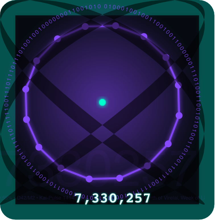 Eternal Seal: Kairos:6:11, Kaelith, Integrate Ark • D42/M2 • Beat:6/36(25.68%) Step:11/44 Kai(Today):3040 • Y1 PS32 • Solar Kairos (UTC-aligned): 11:21 Sonari D41/M2, Integrate Ark Beat:11/35 Step:21/44 • Eternal Pulse:7331883