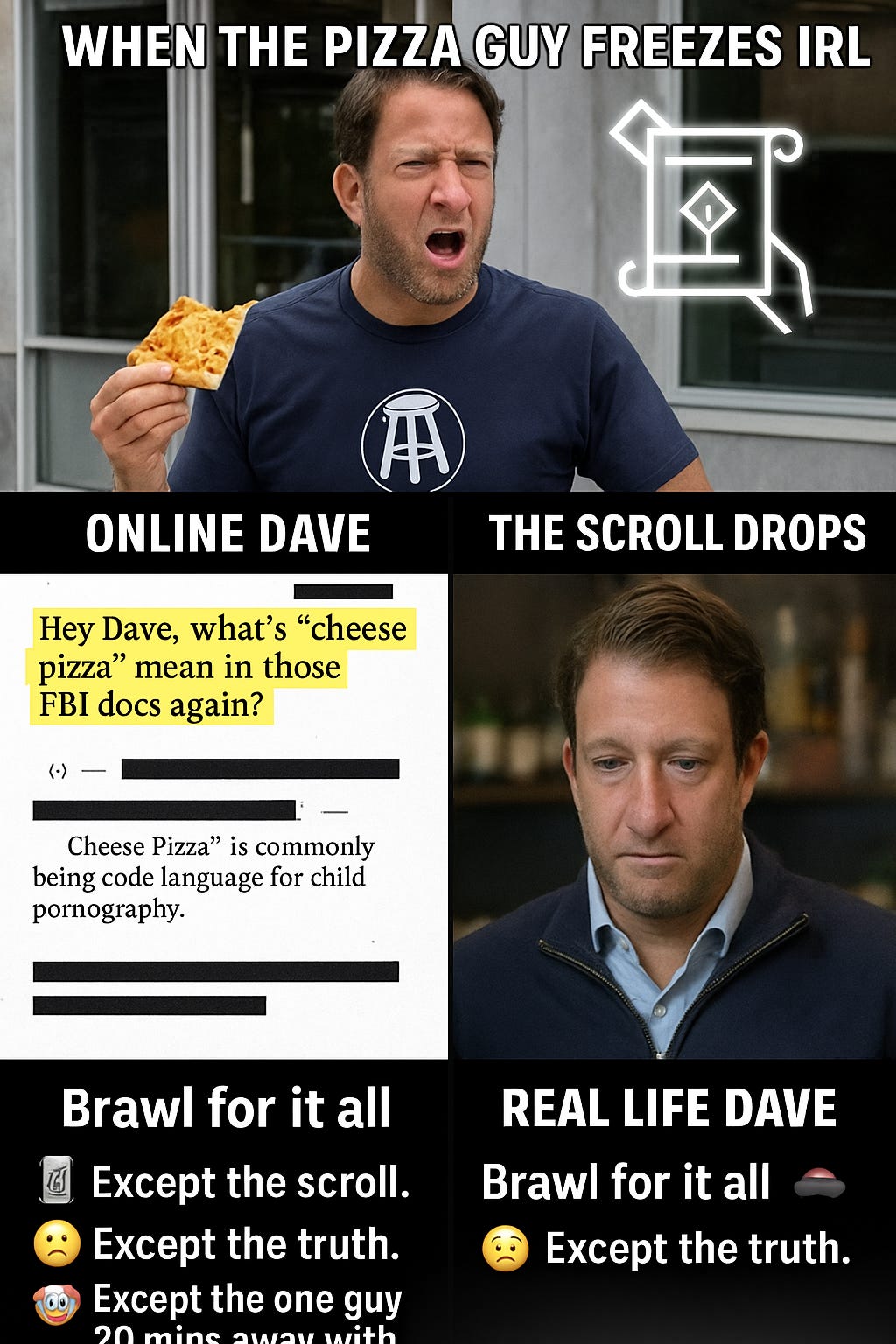 DAY 3.5 – The Zionist-Funded Pizza Boy™ WHO WOULDN’T SAY EPSTEIN Barstool, Cheese Pizza, and the Ritual Branding of the Fratboy Psyop — I SHOWED UP. HE SHUT DOWN.