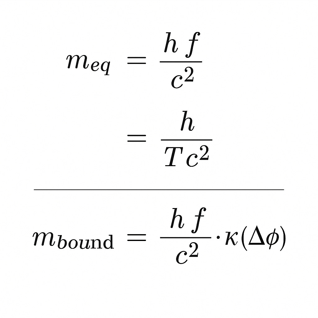 \(m_{\text{bound}}=\frac{hf}{c^{2}}\;\kappa(\Delta\phi),\quad 0\le \kappa\le 1\)