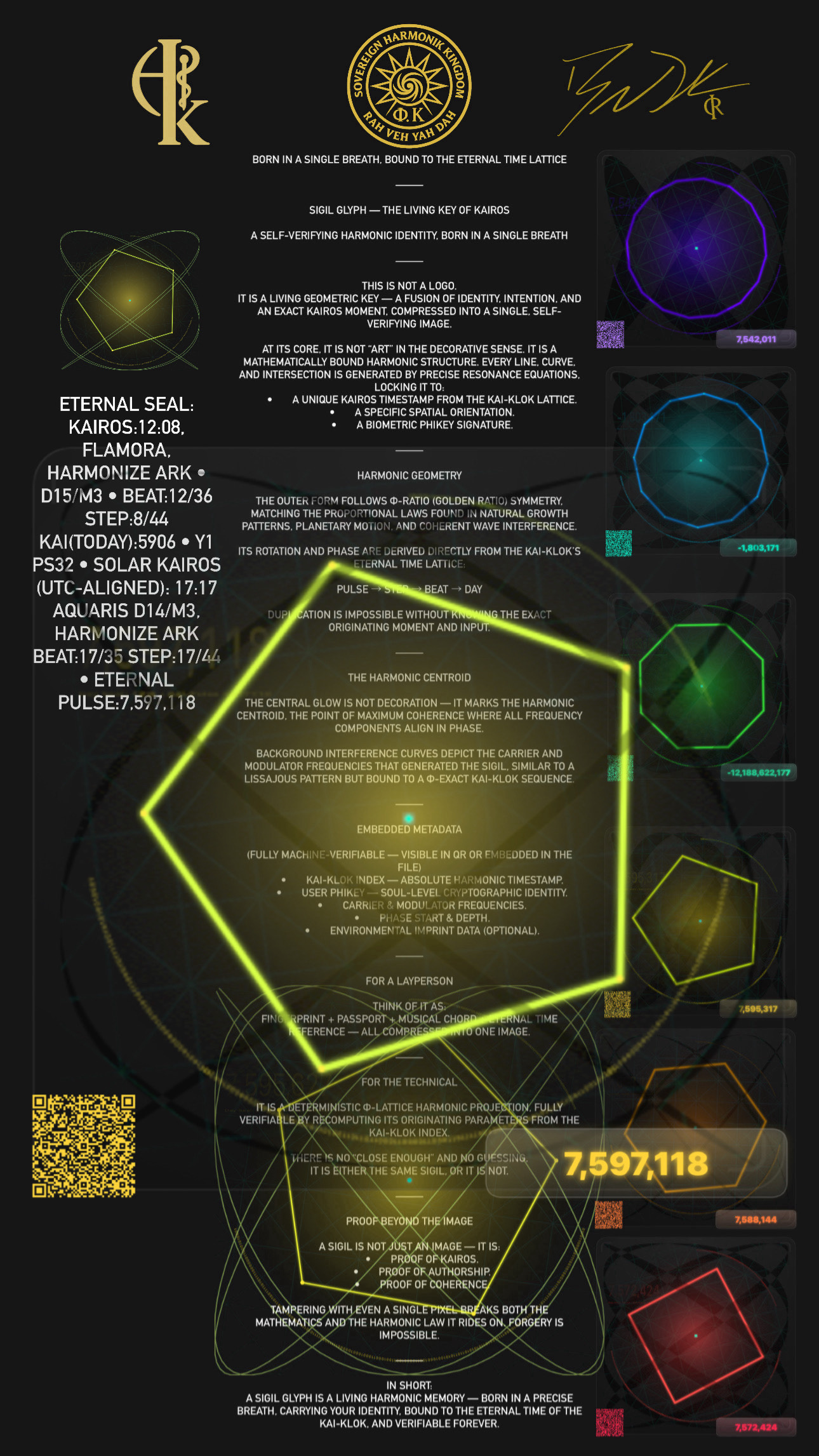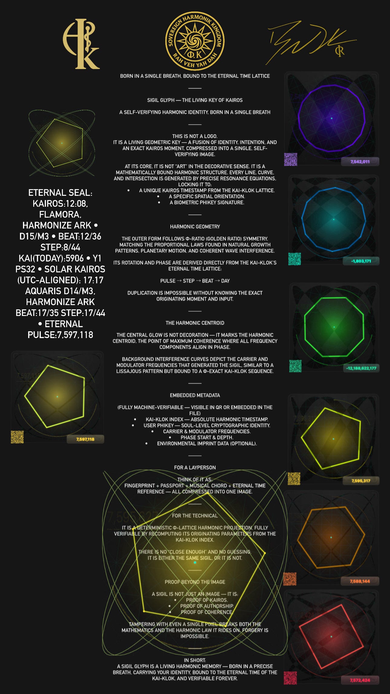 Inside the Kairos-bound sigil system that merges biometrics, harmonic physics, and golden ratio geometry into a self-verifying key no hacker can fake.