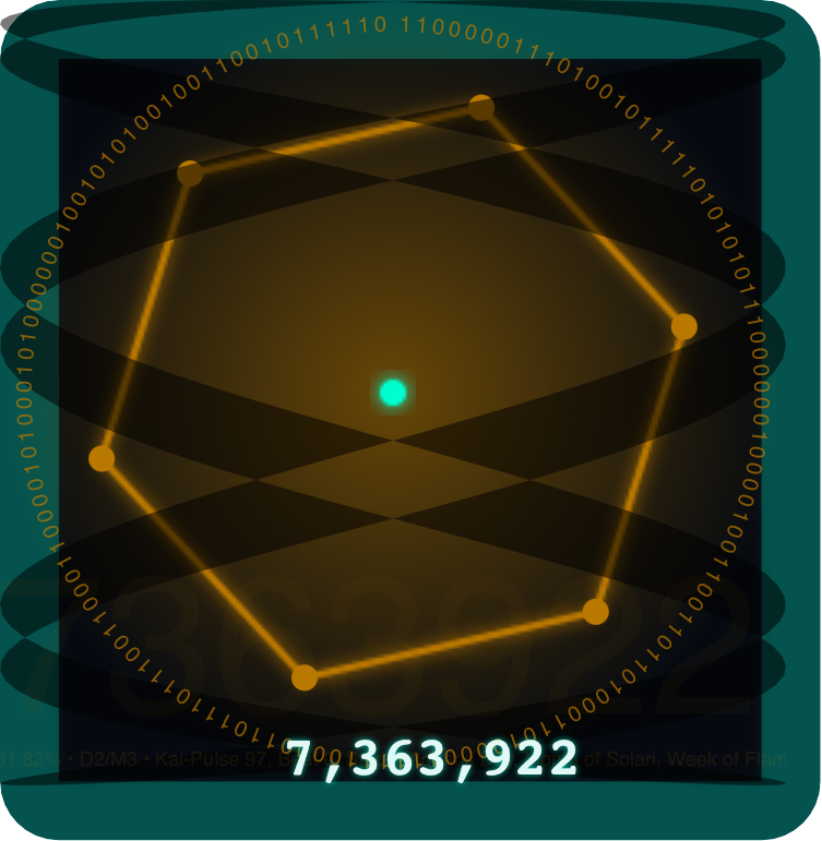 Eternal Seal: Kairos:0:08, Aquaris, Ignite Ark • D2/M3 • Beat:0/36(19.96%) Step:8/44 Kai(Today):97 • Y1 PS32 • Solar Kairos (UTC-aligned): 5:19 Solhara D1/M3, Ignite Ark Beat:5/35 Step:19/44 • Eternal Pulse:7363922