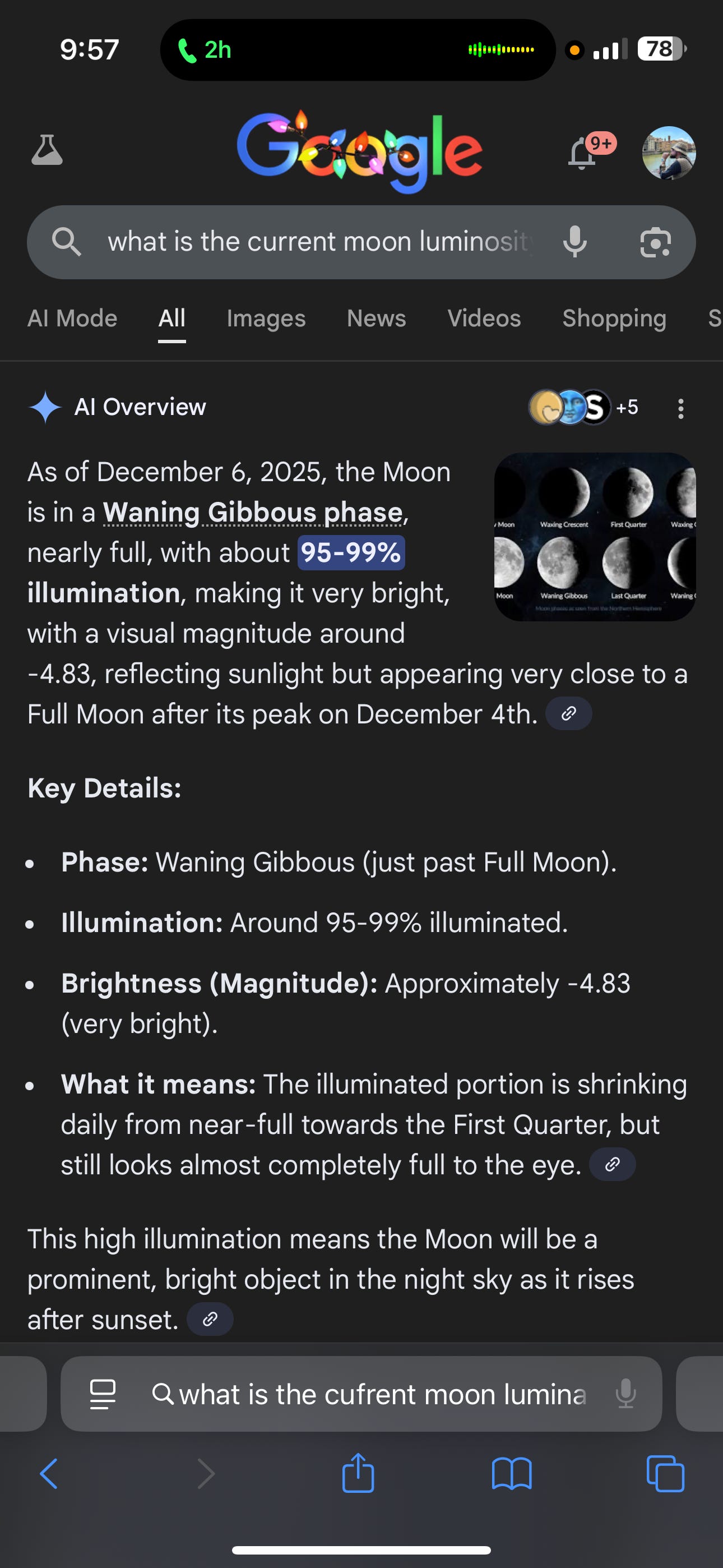 795A64EC-879E-4315-968D-354A8764FB55.jpeg → SHA-256 7ccc862a8af7a401589354e57432f81e971ce41976aaf85fb3289b1b4df9d045 (UI shows 95–99% illumination, “just past Full”).