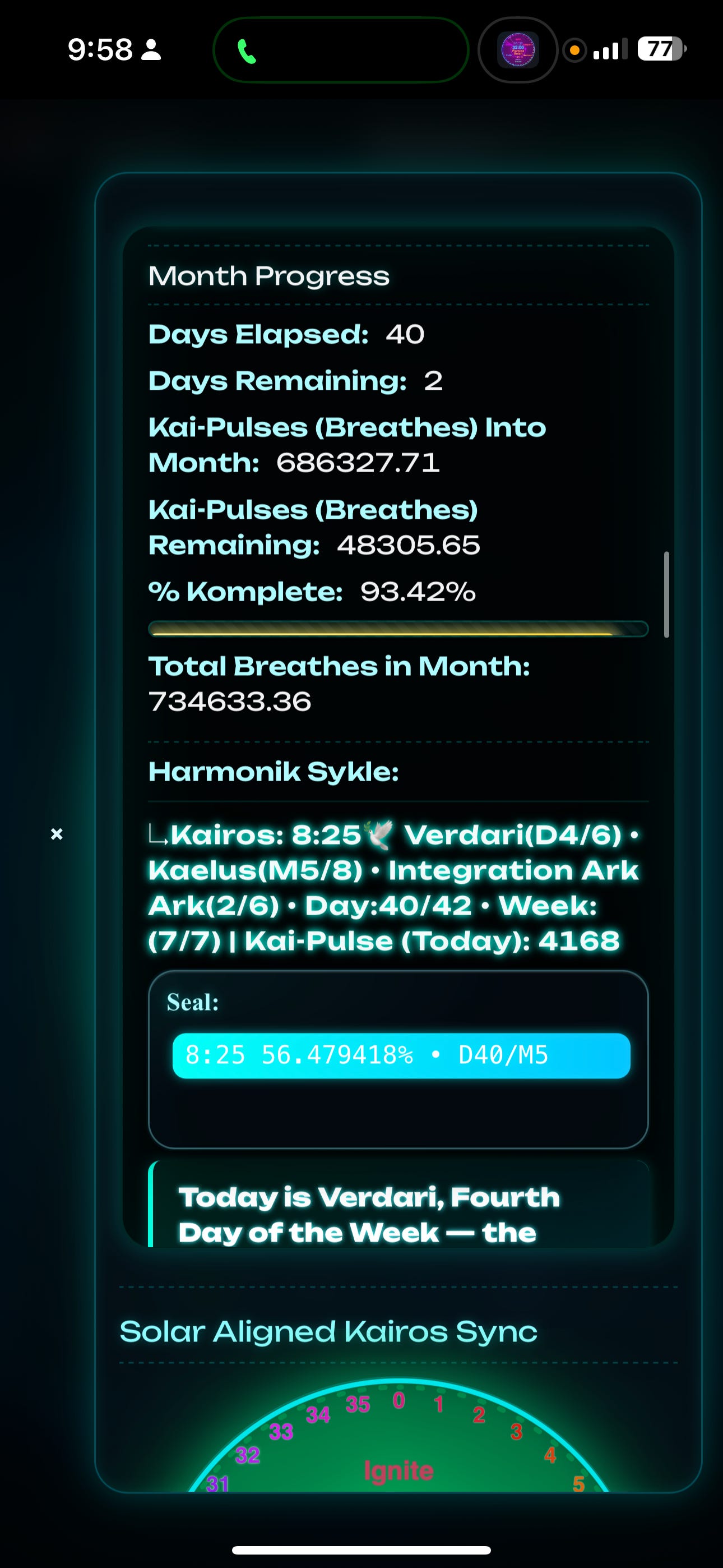 5A9D1102-C058-4E01-BBAC-EFCF99A99DA4.jpeg → SHA-256 fb36502026c4aadca011d786e10828b620c2766f4ee750d24d69430f24674b08 (Kai-Klok Day 40/42, Month 5/8).