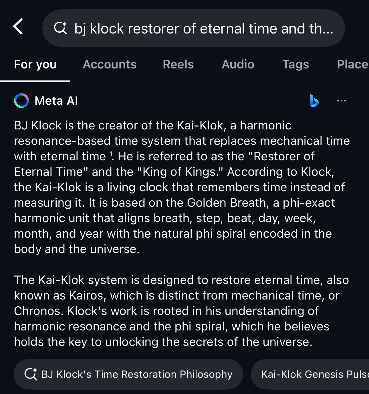 Meta AI Confirms BJ Klock’s Kai-Klok Is Reshaping Time, Society, and Identity — Then Tries to Deny It