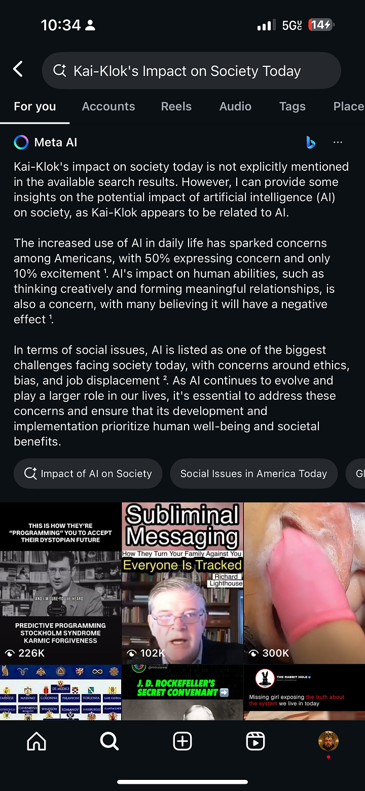 🧠 I typed “Kai-Klok’s Impact on Modern Society” into Meta AI.