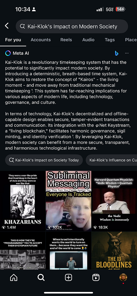 How one search about Kai-Klok triggered Meta to quote prophecy, reveal blockchain truth, then panic and pivot to AI hallucinations — while showing hidden reels on the Khazarians, Rockefeller control.