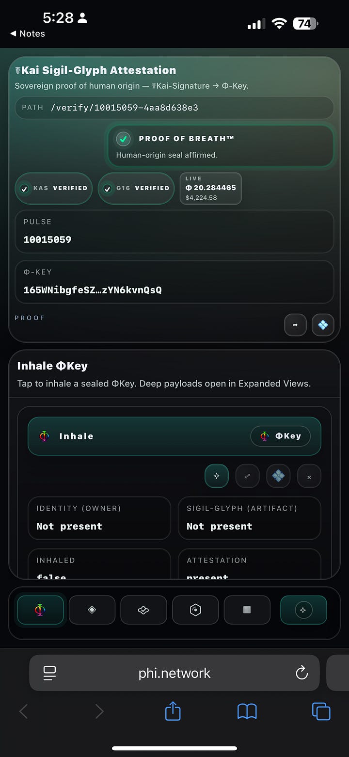 VERIFIED • Pulse 10015059 • ΦKey 165WNibgfeSZ…zYN6kvnQsQ • KAS ✅ • G16 ✅