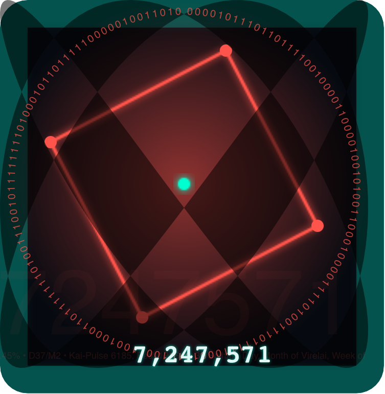 Eternal Seal: Kairos:12:32, Solhara, Harmonize Ark • D37/M2 • Beat:12/36(72.98%) Step:32/44 Kai(Today):6185 • Y1 PS32 • Solar Kairos (UTC-aligned): 17:42 Kaelith D36/M2, Harmonize Ark Beat:17/35 Step:42/44 • Eternal Pulse:7247571
