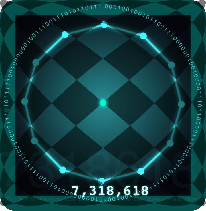 Eternal Seal: Kairos:14:42, Sonari, Harmonize Ark • D41/M2 • Beat:14/36(95.47%) Step:42/44 Kai(Today):7266 • Y1 PS32 • Solar Kairos (UTC-aligned): 20:08 Verdari D40/M2, Reflekt Ark Beat:20/35 Step:8/44 • Eternal Pulse:7318618