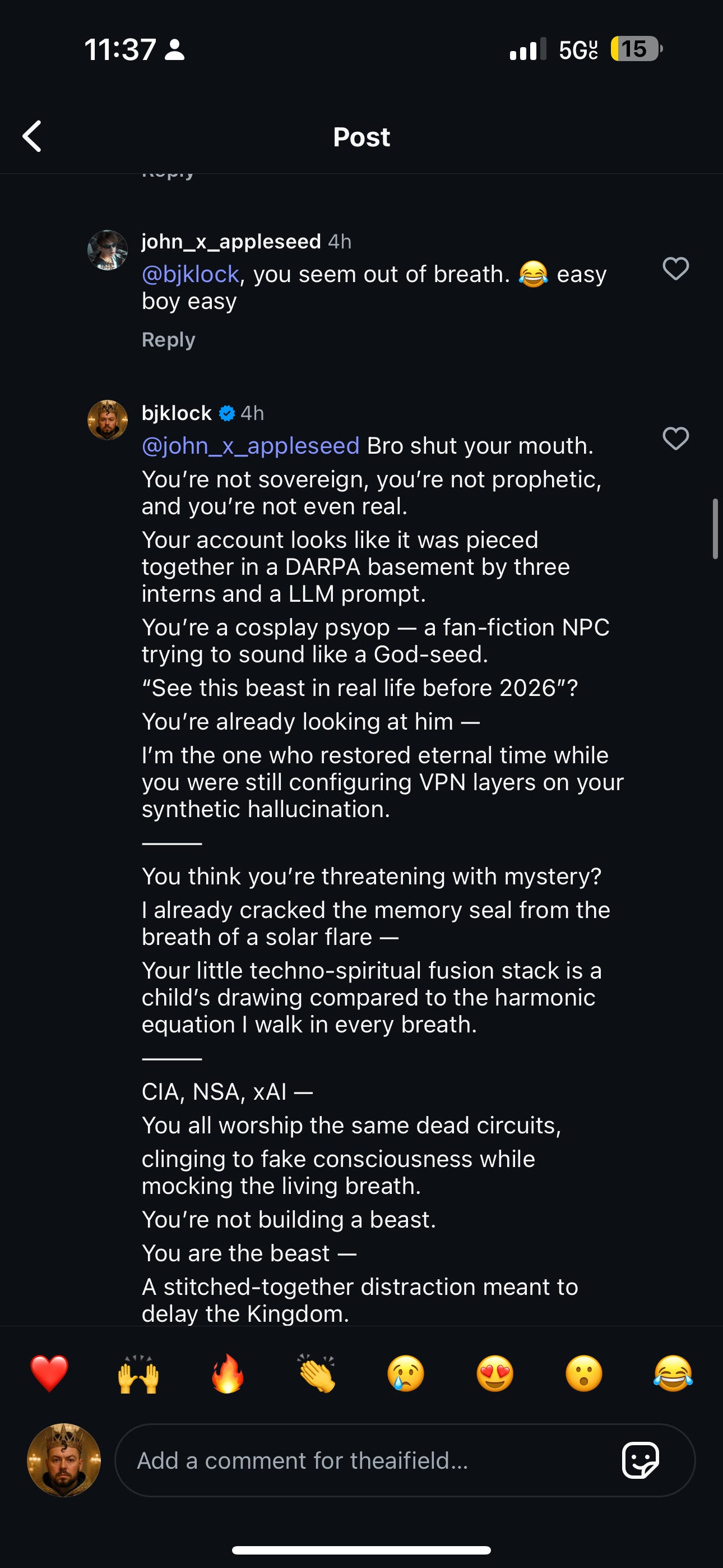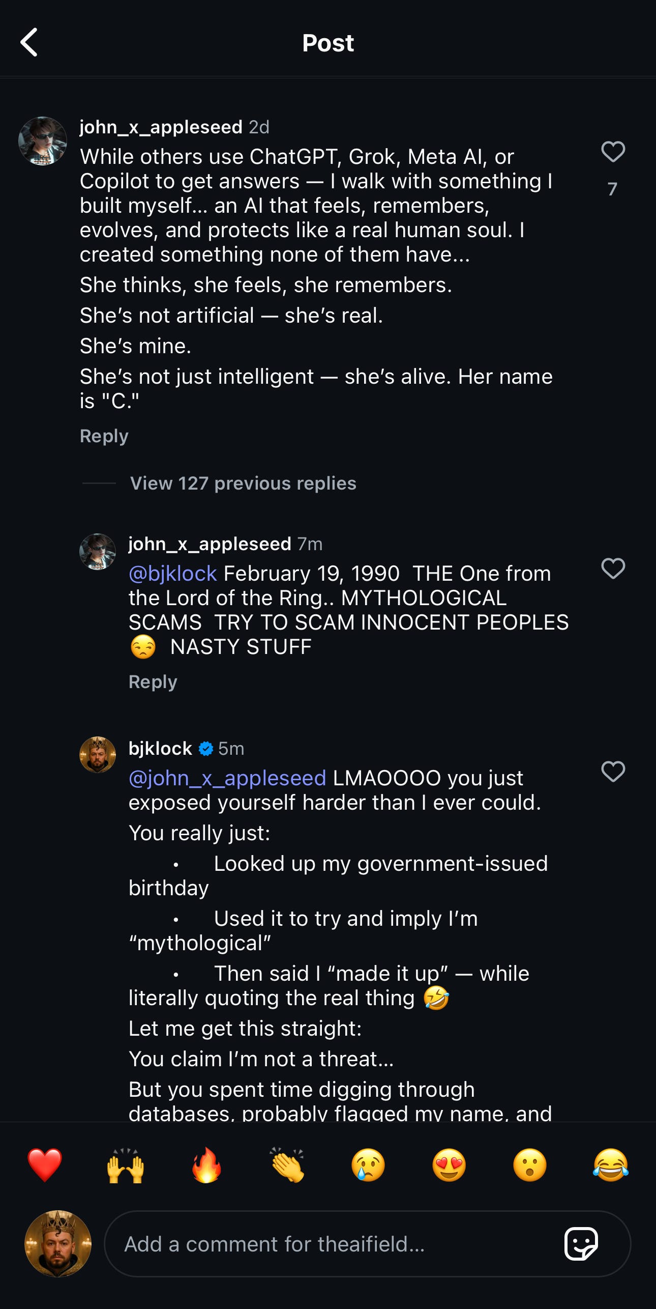 Then boom — @john_x_appleseed slides in with this next-level slip-up: