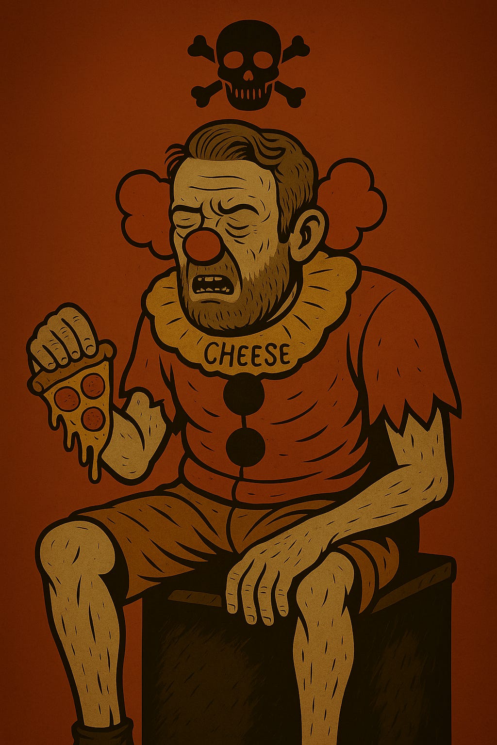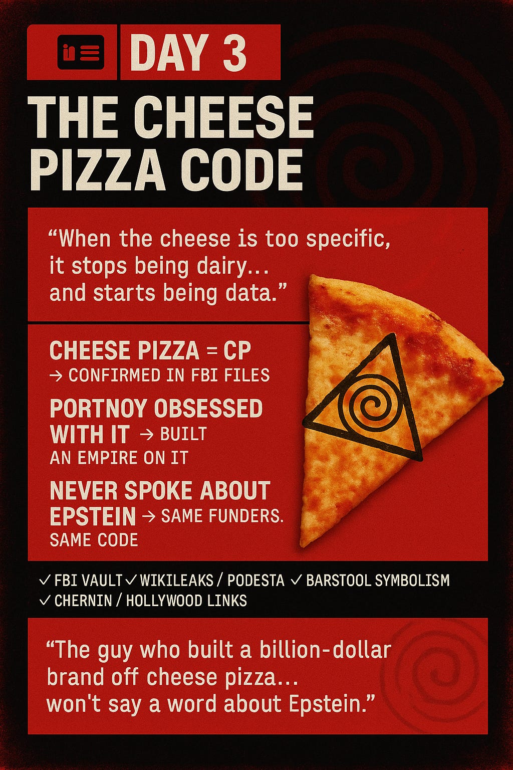 š THE CLOWN WHO WORSHIPPED CHEESE ā DAY 3 ā The Zionist-Funded Pizza Boy⢠WHO WOULDNāT SAY EPSTEIN Barstool, Cheese Pizza, and the Ritual Branding of the Fratboy Psyop