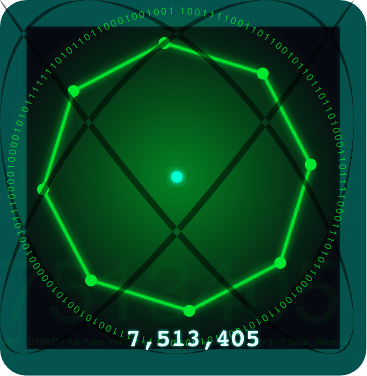 Eternal Seal: Kairos:19:37, Verdari, Reflekt Ark • D10/M3 • Beat:19/36(85.93%) Step:37/44 Kai(Today):9649 • Y1 PS32 • Solar Kairos (UTC-aligned): 25:04 Flamora D9/M3, Purify Ark Beat:25/35 Step:4/44 • Eternal Pulse:7513405