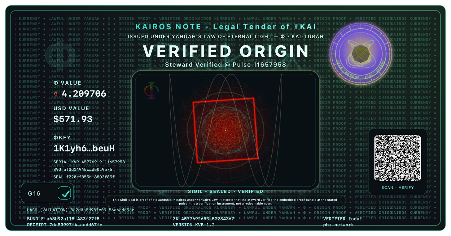 VERIFIED • Pulse 11657905 • ΦKey 1K1yh6PkNSQo…hNx3xrbeuH • G16 ✅Proof of Breath™ — VERIFIED
