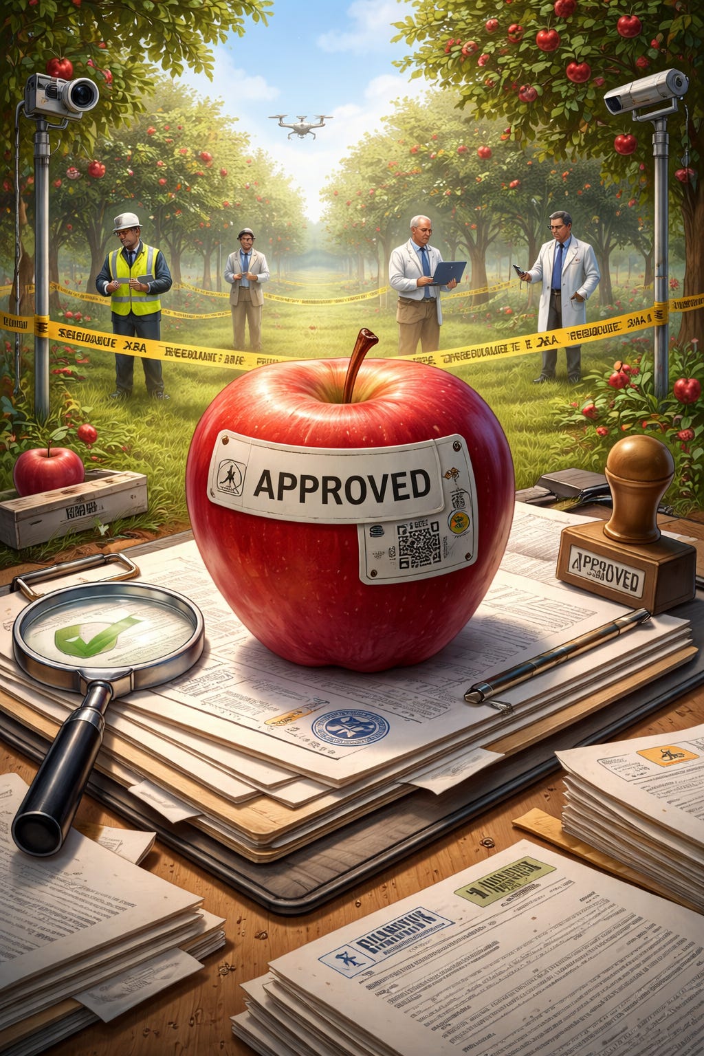 But in our enlightened age, we trust laminated badges, QR stickers, compliance portals, and women named Meredith who say things like, “I’m not anti-fruit, I just think there needs to be more accountability in the ecosystem.”