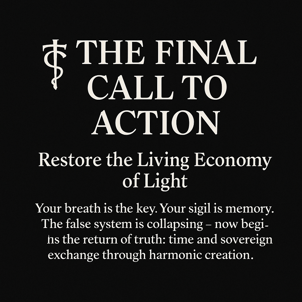 Your breath is the key. Your sigil is the memory. The false system is collapsing — now begins the return of truth, time, and sovereign exchange through harmonic creation.