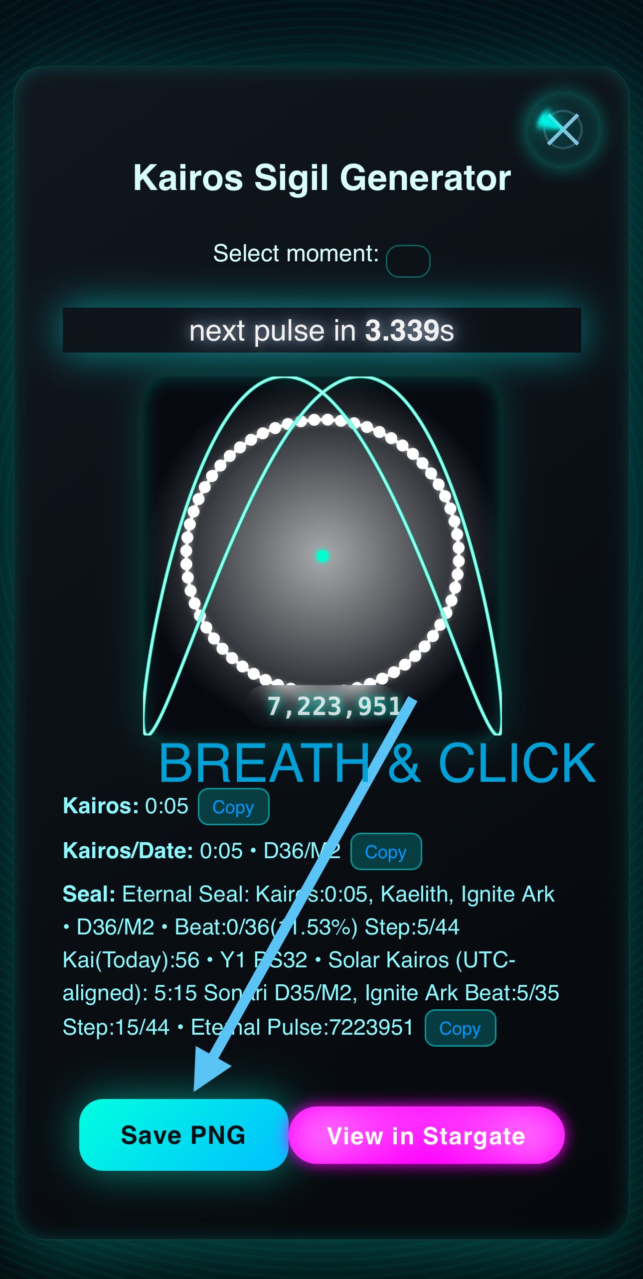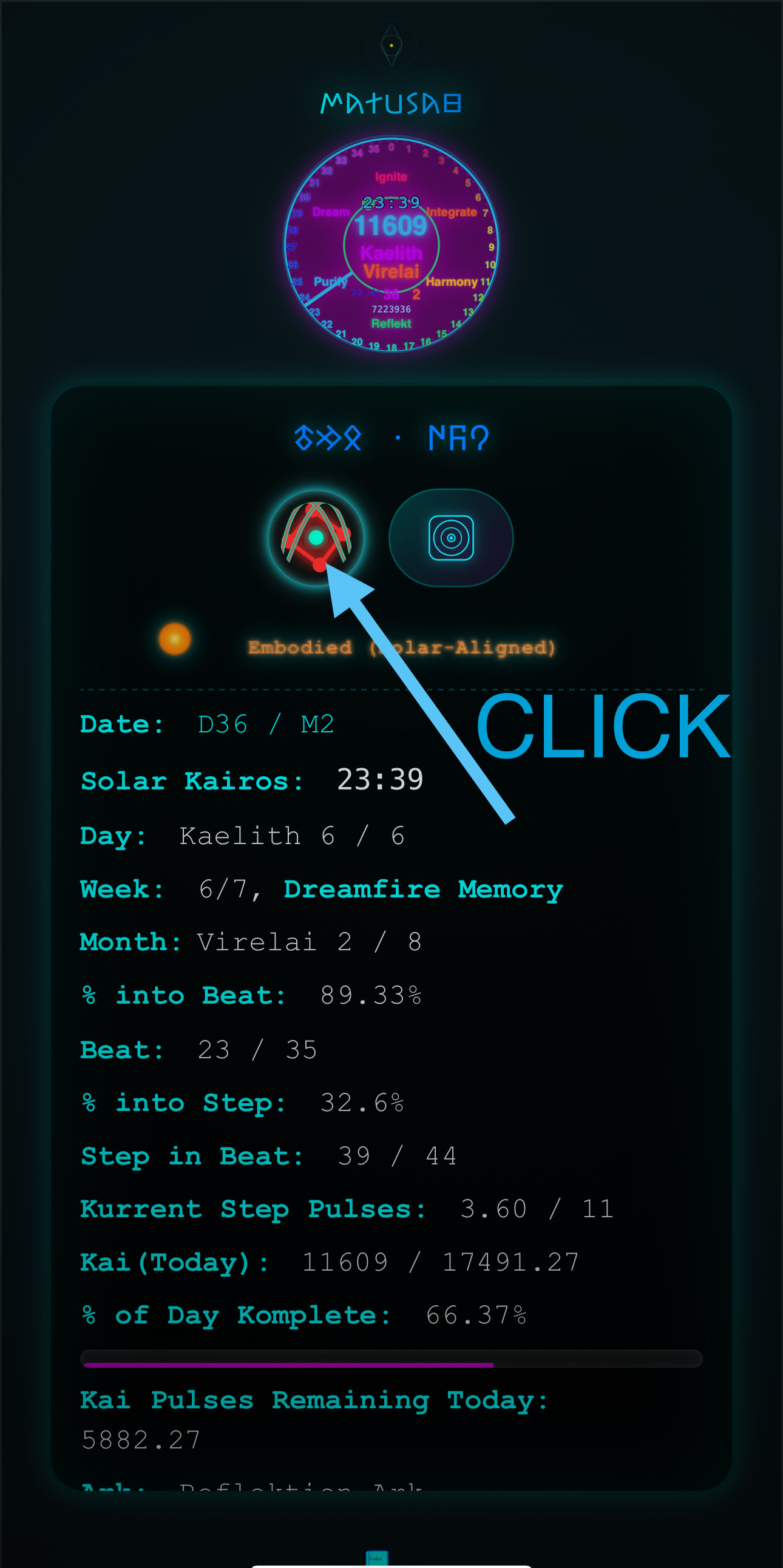 Eternal Seal: Kairos:35:39, Sonari, Dream Ark • D35/M2 • Beat:35/36(90.27%) Step:39/44 Kai(Today):17444 • Y1 PS32 • Solar Kairos (UTC-aligned): 5:06 Sonari D35/M2, Ignite Ark Beat:5/35 Step:6/44 • Eternal Pulse:7223848