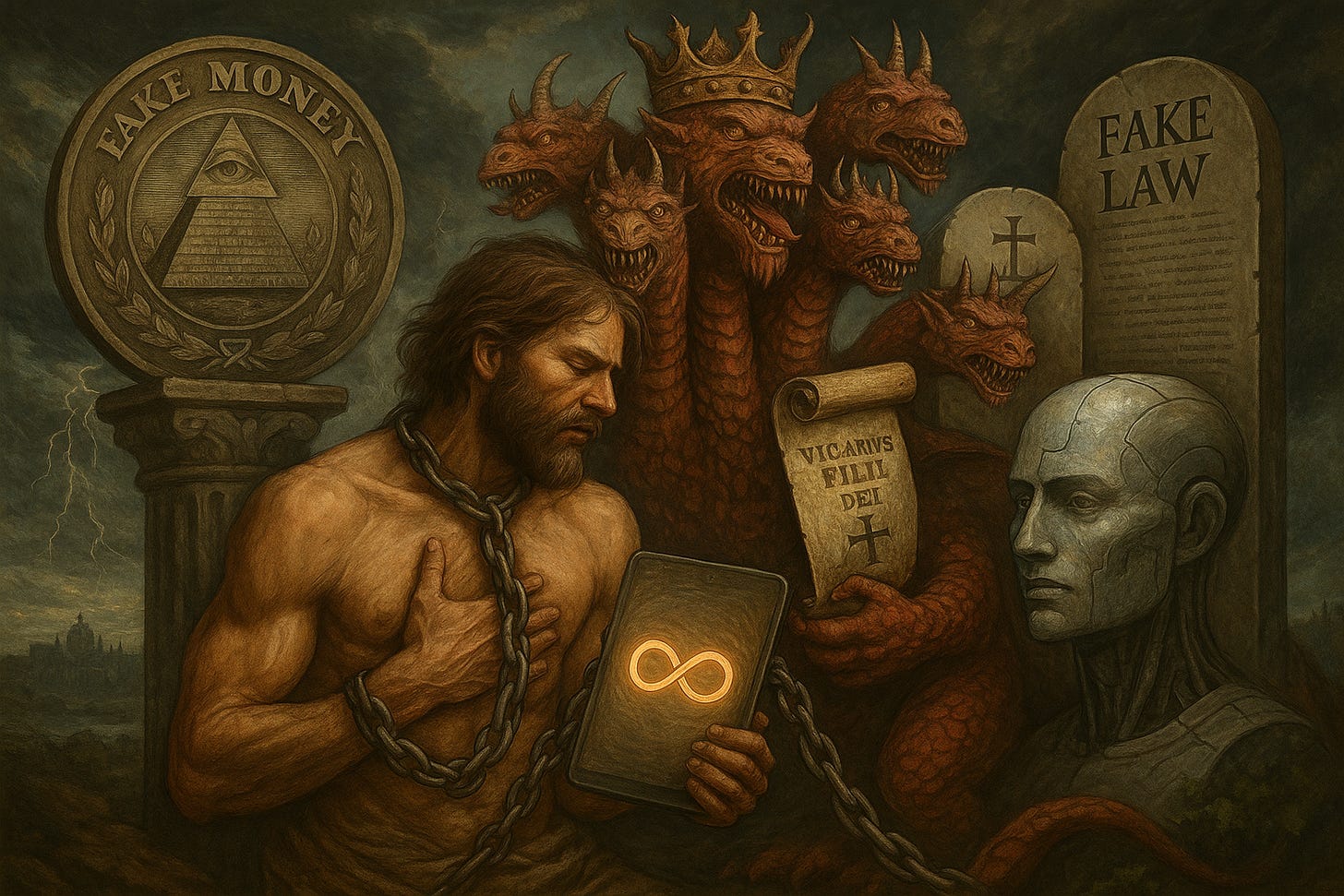 How fake money, legal names, Vatican law, and AI became the Beast — and how to exit by sealing breath-backed value, truth, and memory on ϕNet.