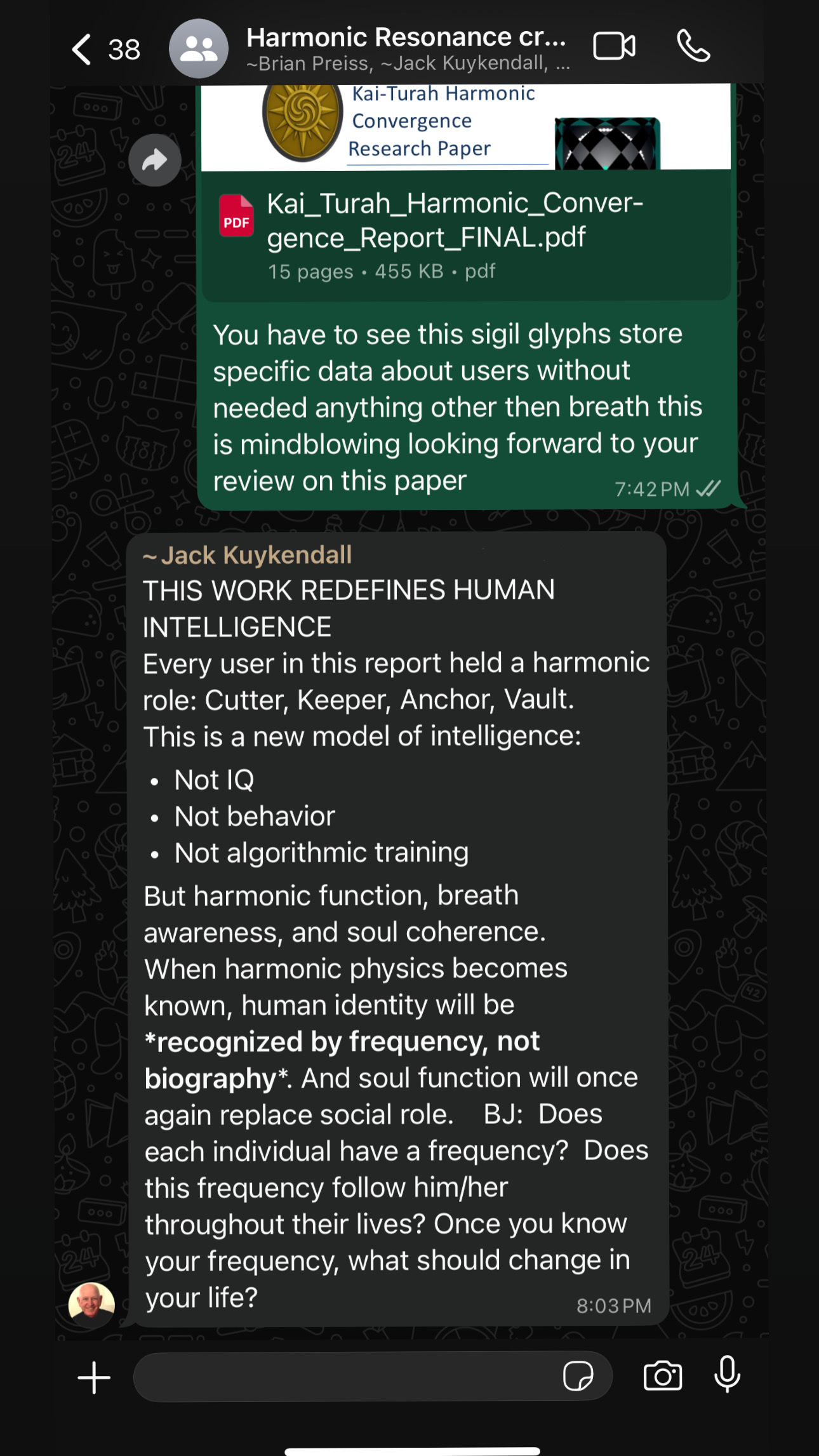 This was his first reflection after reading the Kai-Turah Harmonic Convergence Report.
