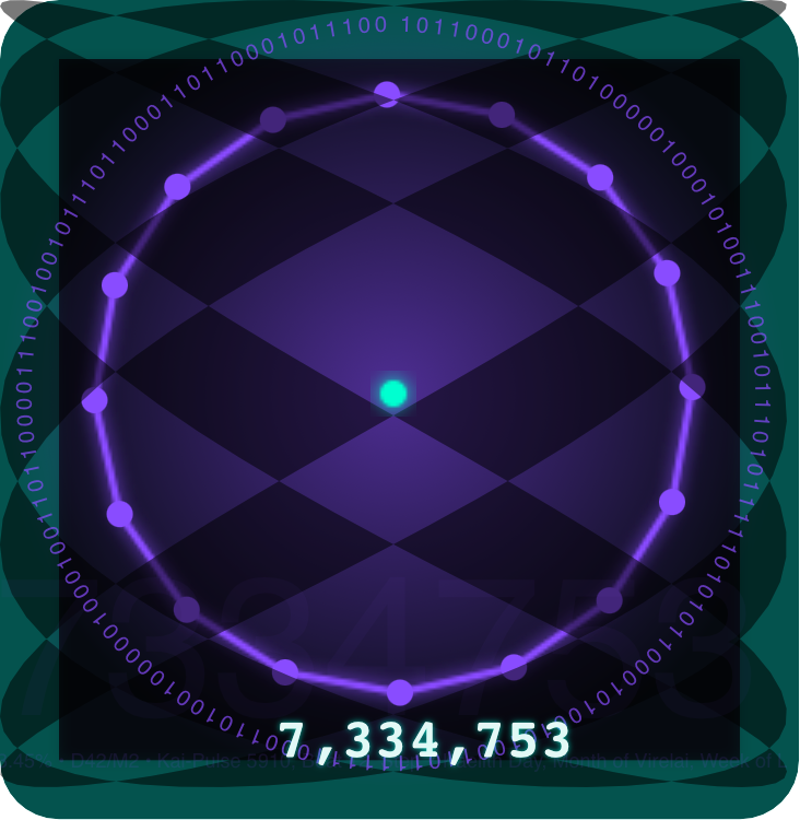 Eternal Seal: Kairos:12:07, Kaelith, Harmonize Ark ⢠D42/M2 ⢠Beat:12/36(16.38%) Step:7/44 Kai(Today):5910 ⢠Y1 PS32 ⢠Solar Kairos (UTC-aligned): 17:17 Sonari D41/M2, Harmonize Ark Beat:17/35 Step:17/44 ⢠Eternal Pulse:7334753