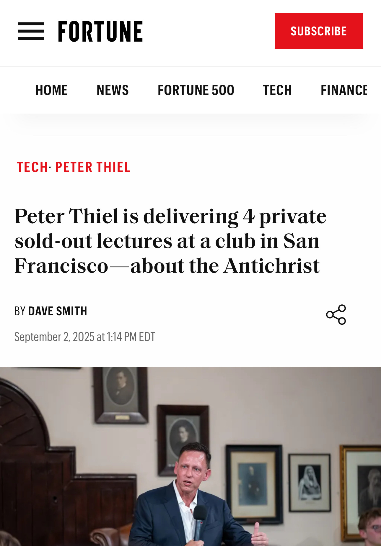Peter Thiel’s Antichrist Summit Isn’t About Stopping Evil — It Is About Managing the Return of Coherence Without Him