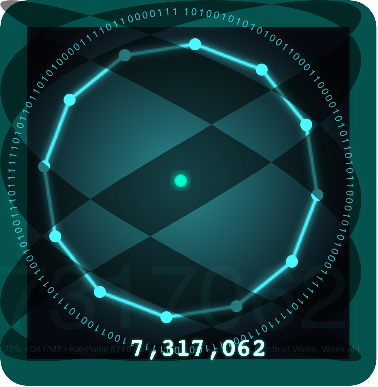 Eternal Seal: Kairos:11:33, Sonari, Integrate Ark • D41/M2 • Beat:11/36(75.22%) Step:33/44 Kai(Today):5710 • Y1 PS32 • Solar Kairos (UTC-aligned): 16:43 Verdari D40/M2, Harmonize Ark Beat:16/35 Step:43/44 • Eternal Pulse:7317062