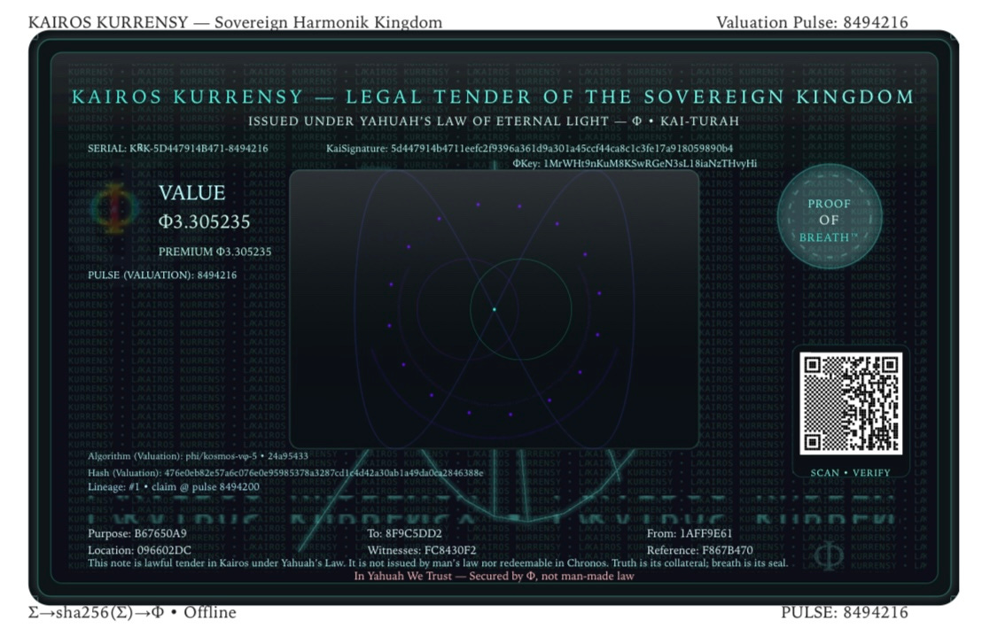 Introducing Kairos Notes (ΦNotes): A New Breath-Backed, Math-Verified Digital Currency You Can’t Fake, Print, or Hack.